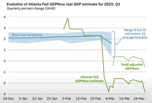 골드만삭스에서는 미국의 25년 1분기 성장률이 0.6% 성장할 것으로 예상치를 바꾸기도 했습니다. (이전 1.0%, 2월 1.8%) 그만큼 1분기 경기가 나쁘다는 사실을 시사한다고 볼 수 있습니다.