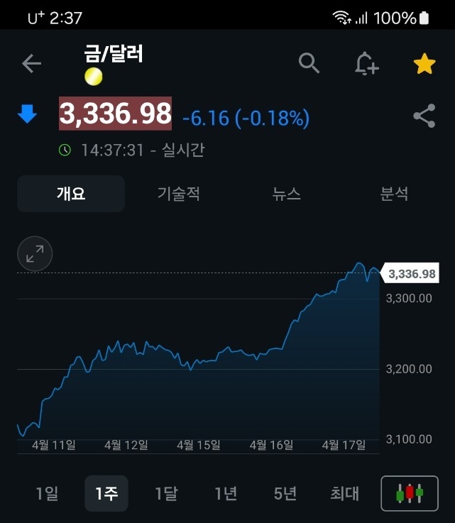많은 분들이 지난 한 주 동안 금 가격 상승하는 모습을 보면서 막연하게 트럼프의 관세정책 때문에 불안해서 그렇구나 라고 생각들을 하시는 것 같습니다. 물론, 틀린 이야기는 아니라는 생각입니다.