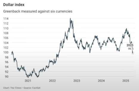 여기에 달러의 약세도 금값 상승을 부추기고 있습니다. 주요 6개국 통화(유로화·엔화 등) 대비 달러 가치를 보여주는 달러인덱스는 현재 99.470를 기록하고 있죠. 일반적으로 달러지수와 금 가격은 반대 방향으로 이뤄집니다.